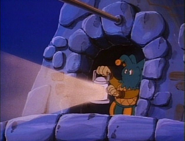 Back inside, the cooks bring Grubby his root stew. When he sees Grubby