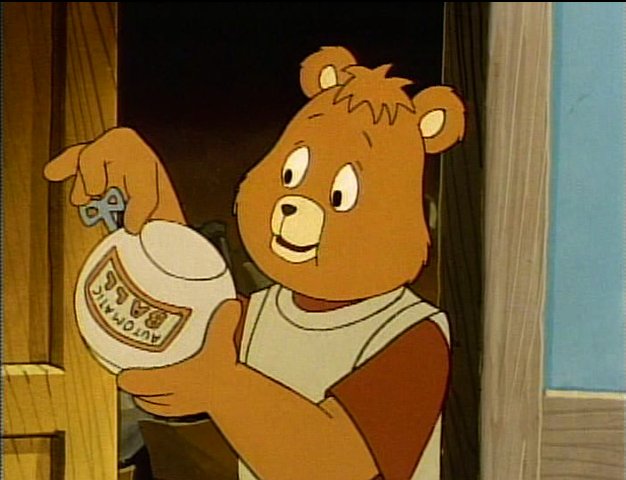 ball" with a wind up device. The ball bounces around and Teddy hides in