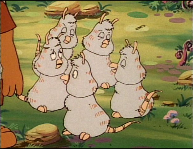 Fobs inform Teddy that Rainbow falls has no water. The Fobs and Teddy