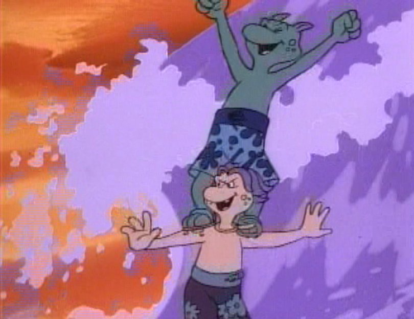 Meanwhile, Tweeg is finally getting the hang of surfing, and LB even